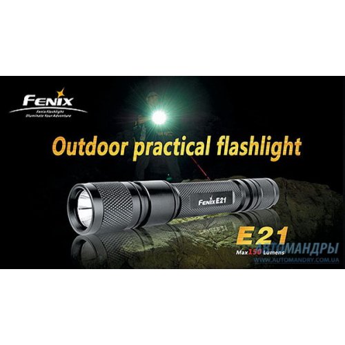 Данный фонарь является представителем класса недорогих бытовых фонарей, рассчитанных на широкий круг пользователей. Лаконичный дизайн, простое управление, доступные элементы питания - отличительная сторона этого фонаря. Доступно 2 режима яркости Лучшее решение для тех, кому нужен простой и надёжный фонарь. Выпускается с двумя вариантами светодиодов - CREE XP-E R2 (148 люмен) и CREE XP-E Neutral White (135 люмен). Отличный фонарь для автомобильных путешественников и пеших туристов! Купить фонарь Fenix E21 R2 154 lumen в магазине Автомандры www.automandry.com.ua с доставкой по Киеву и Украине!