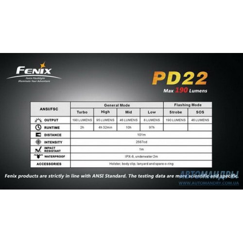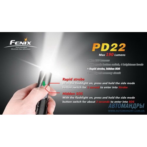 Отличный фонарь для автомобильных путешественников и пеших туристов! Купить фонарь Fenix PD22 R5 в магазине Автомандры www.automandry.com.ua с доставкой по Киеву и Украине!