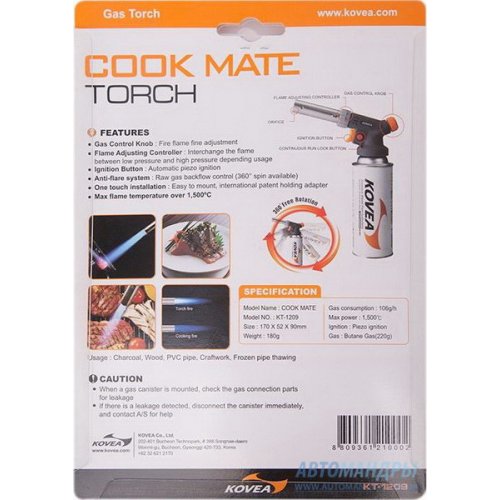 Газовый резак с мульти-регулировкой пламени, пьезоподжигом, имеет блокировку поджига и очень тонкую регулировку газовой струи, c температурой до 1300 С. Наличие предварительного подогрева газа позволяет работать газовому резаку в перевернутом состоянии. Газовый резак рассчитан для установки на высокий, цанговый газовый баллон Kovea KGF-220. Пригодится каждому туристу! Купить газовый резак Kovea Cook Mate KT-1209, а также посмотреть отзывы можно у нас в магазине "Автомандры" www.automandry.com.ua! У нас самые лучшие цены и мы предлагаем доставку товара курьером в Киеве и по всей территории Украины.