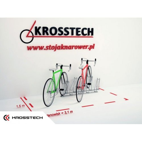 Велопарковка с разноуровневой установкой велосипедов для мест с ограниченным пространством. Подходит для всех типов и размеров велосипедов, в том числе оснащенных дисковыми тормозами. Купить велопарковку Krosstech Cross Save-5 в магазине Автомандры www.automandry.com.ua с доставкой по Киеву и Украине!
